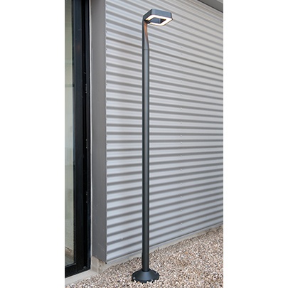 The opal white plastic diffuser downwards ensures a universal white lighting of the environment. The modern and functionally designed luminaire adapts well to many modern designed plots and ensures that even in the dark the way is always found