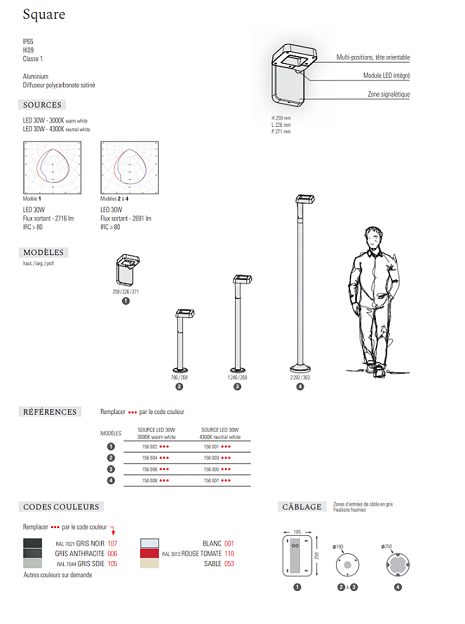 The path lamp SQUARE of the manufacturer Roder Pradier has a height of 125 cm. Foot and light frame are made of aluminum and anthracite colored.