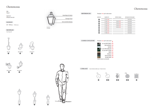 The Chenonceau line includes wall and ceilings lights, as well as pedestal lights in various sizes.