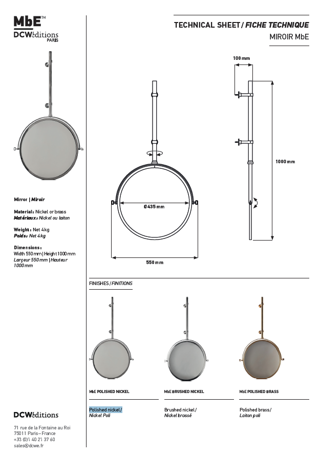 צבעים: Polished nickel // Brushed nickel // Polished brass