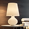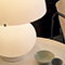 The soft and perfectly proportioned forms, the purity of the design and the milky opalescent finish combine to make it a timeless piece, perfect in every setting, whether turned on or off.