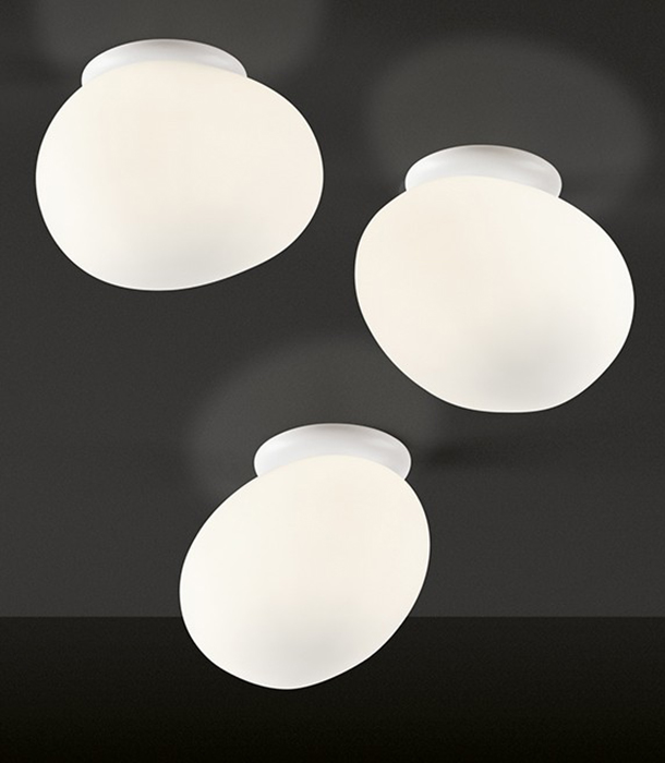 Wall or ceiling lamp with diffused light.