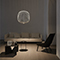 A collection of suspension lamps with two different shapes. The opaque epoxy powder varnished steel spokes are attached to the upper part by two ABS/polycarbonate discs and to the lower part of the aluminium module that acts as the housing and heat sink for the two LED boards.