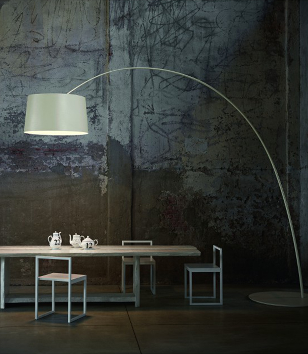 Large floor lamp with direct and indirect up light. Diffuser and rod made of fibreglass-based composite material and liquid coated.